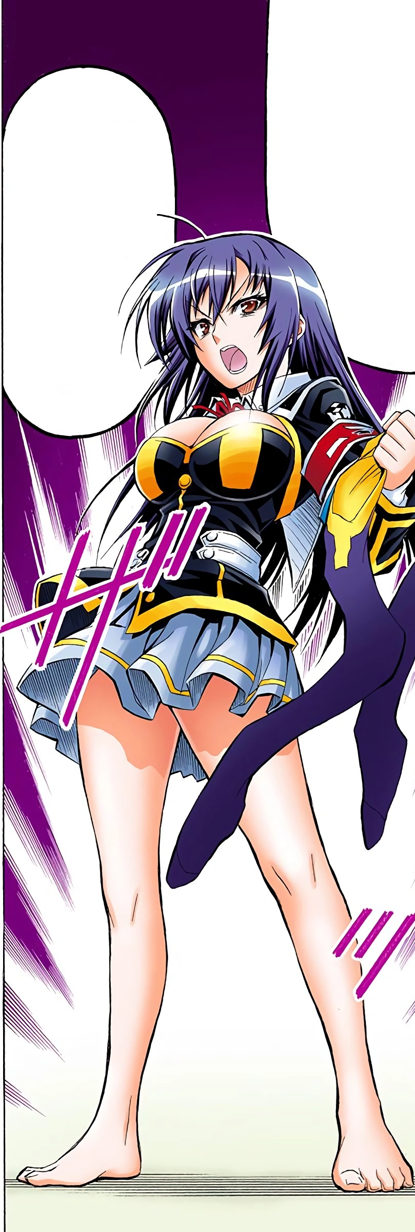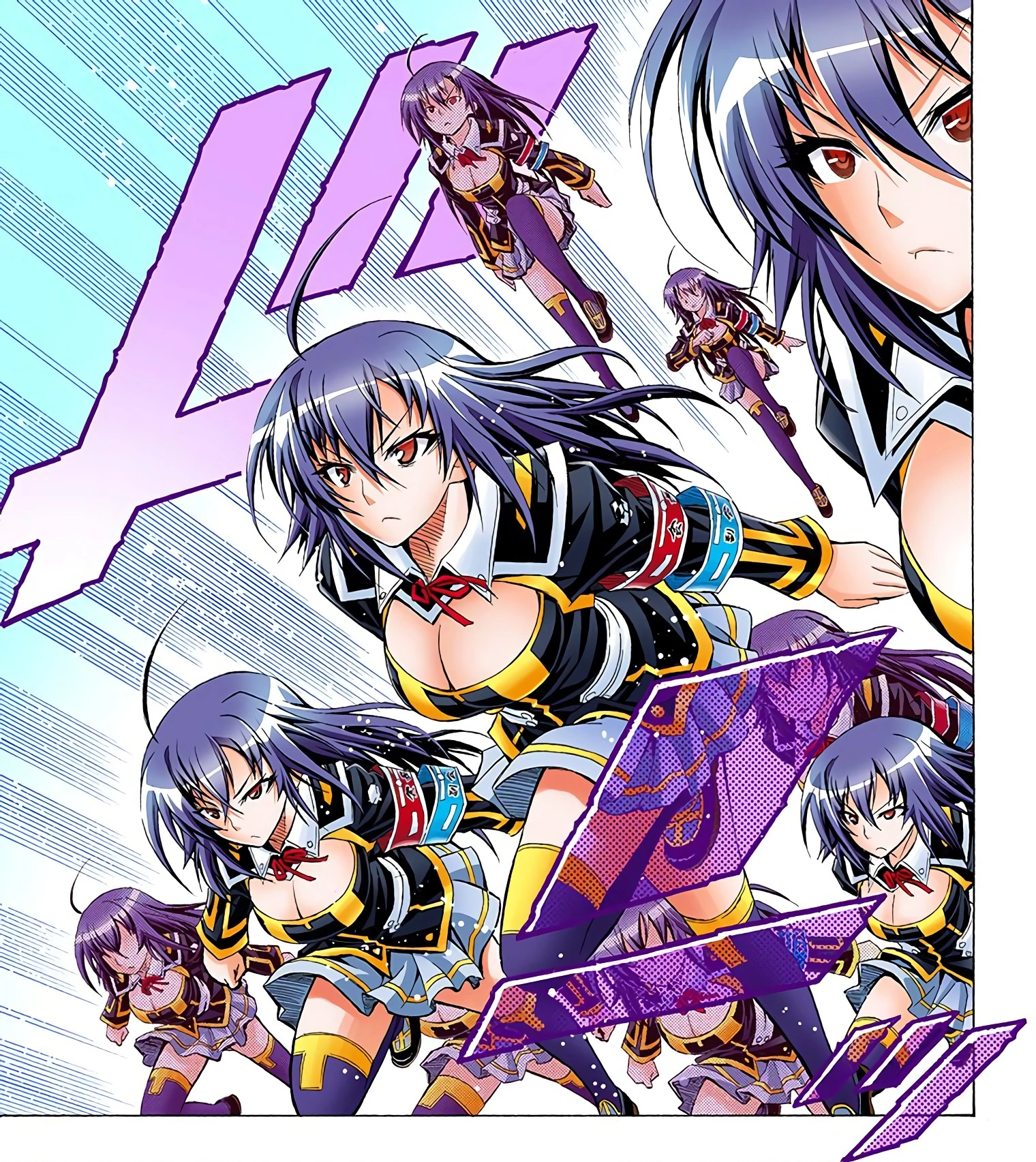 Shigusa laughs, saying that it's now clear who the superior one is, since having great reflexes is invariably better than not having any. Medaka replies that, since she's already gotten her hands on the data, there's no reason for her to fight anymore, but then Shigusa reveals that the drive she had was a fake, showing a much bigger one containing the real data. Akune is concerned, saying that she's forced to once again face her opposite, as in the fight with Myouri Unzen, which prompts Zenkichi to think that everybody in the Thirteen Party is like an opposite to Medaka, or more like a missing part of herself. Resigned, she declares that she'll continue his experiment a little longer and show Shigusa that his reflexes are just speed with no skill. As she does this, she takes her shoes and socks off, which makes Zenkichi realize what she plans to do, and he panics as he ushers his friends and the twins away from Medaka, trying to avoid getting them in the range of her next attack. Shigusa wonders what she'll do, then dismisses it as her just planning to make more clones. However, Medaka declares that she won't multiply anymore, but disappear, as she begins to jump. Shigusa gradually notices that the sound of her feet hitting the ground is slowly becoming displaced from the actual moment of touching the ground, until Medaka suddenly bursts forward in an explosive attack, hitting her enemy in the chest with her Kurokami Phantom. As he's sent flying into the wall, Shigusa cannot comprehend what just happened, his senses not having picked up anything, and he asks Medaka if she can move faster than light, but she naturally denies it, explaining that she merely changed his timing and then waited for him to blink before attacking. She then says that she accidentally destroyed the data when trying to steal it, and declares that she's won the fight, before collapsing to the ground, explaining that her muscles sustained injuries from the driving force put into them. The Tsushima twins conclude that sometimes not having can be better than having, as Medaka's lack of reflexes meant that she could also suppress her pain, becoming capable of doing some crazy things with her body, while her friends rush over to her collapsed form, Zenkichi thinking that her self-destructing fighting style still hasn't changed from middle school. Then, to everyone's surprise, the battered Shigusa rises up and asks if Medaka died, saying that he'll dissect her as payment for the destroyed data.
